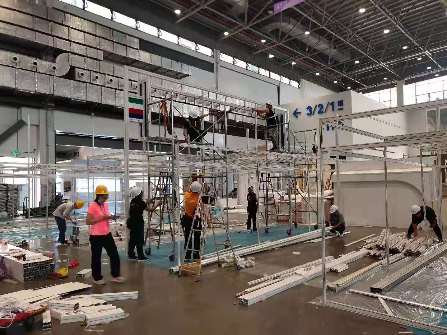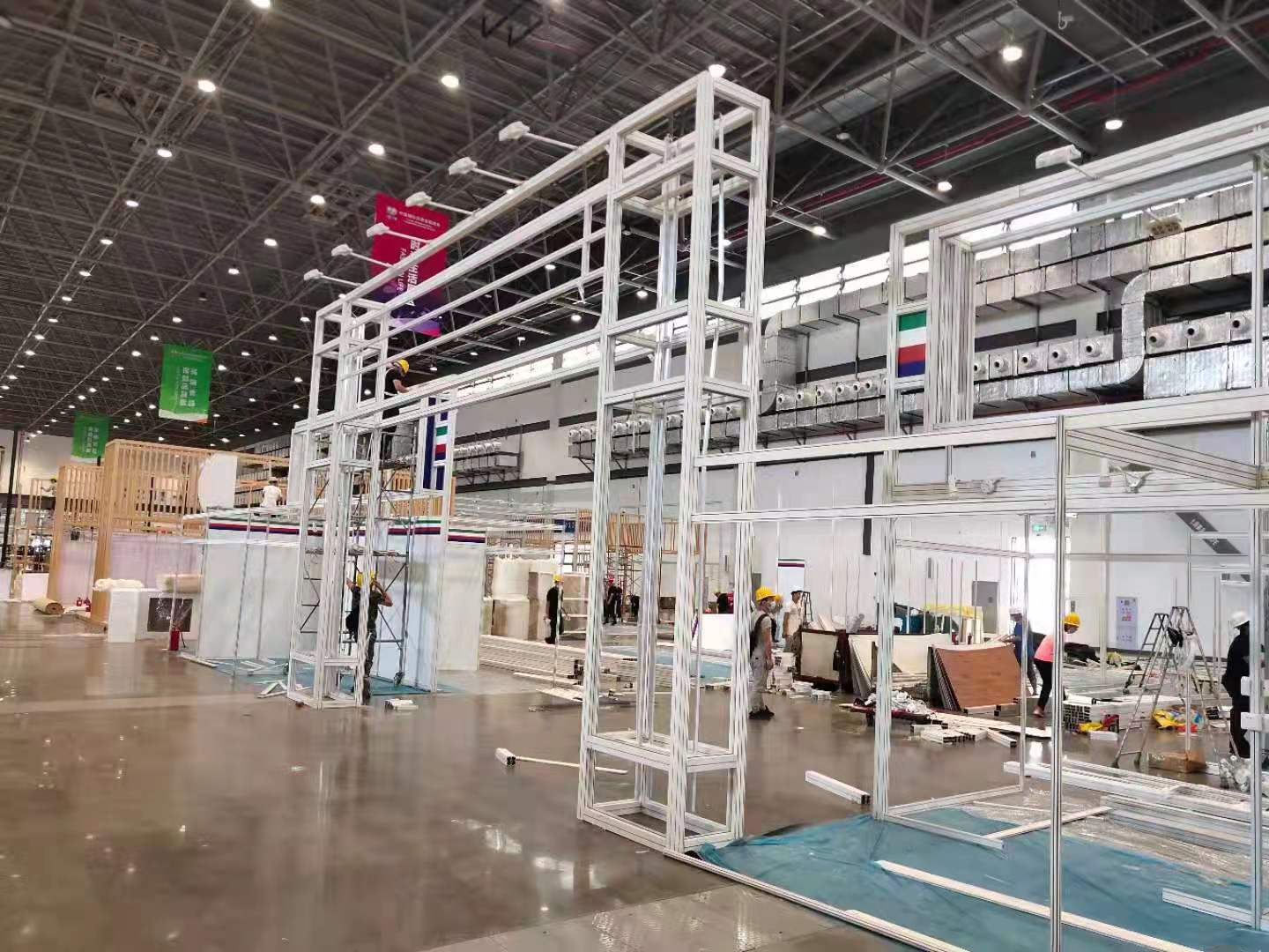 首届中国国际消费品博览会开幕了,立欣展览生产的特装方柱展位采用优质方柱铝材生产制作的,加工工艺精准,经验丰富,搭建出的特装方柱展位在各大小展览会上美观展现,造型多变。